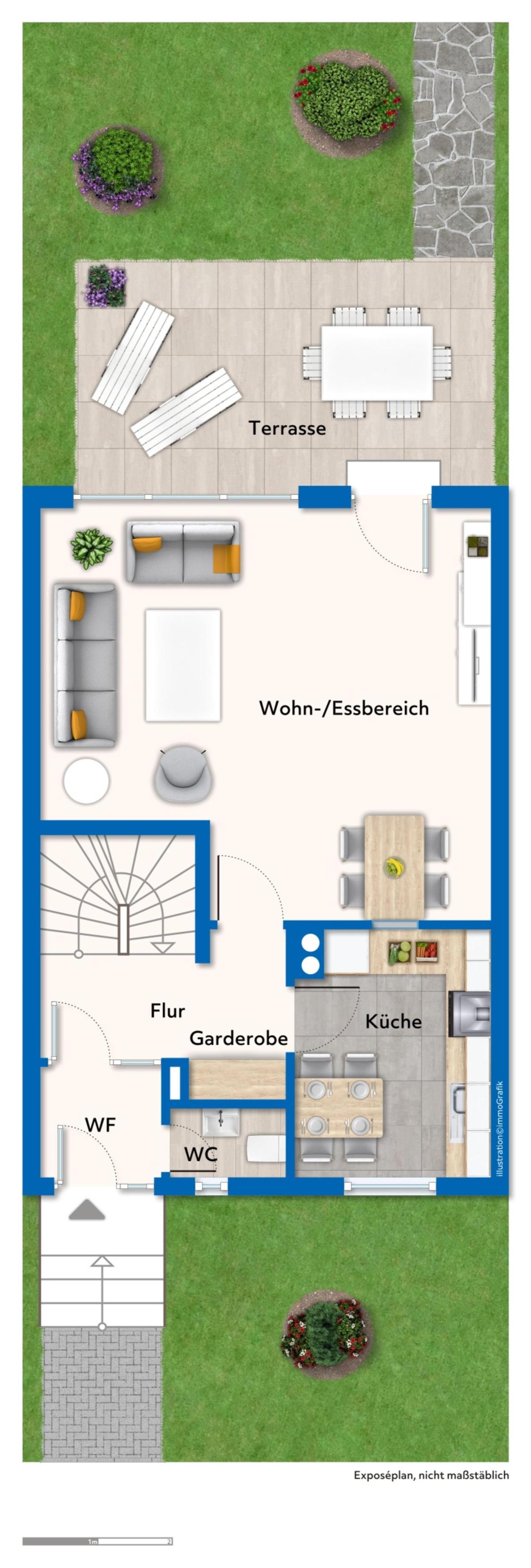 Dieses Reihenmittelhaus bietet den idealen Rahmen für Ihre Familie. Dank der cleveren Hausbreite erleben Sie im hellen Wohn- und Essbereich ein großzügiges Raumgefühl, das zum gemeinsamen Lachen, Spielen und Entspannen einlädt. Die separate Küche, ein Gäste-WC sowie Garderobe und Windfang runden das Erdgeschoss ab.