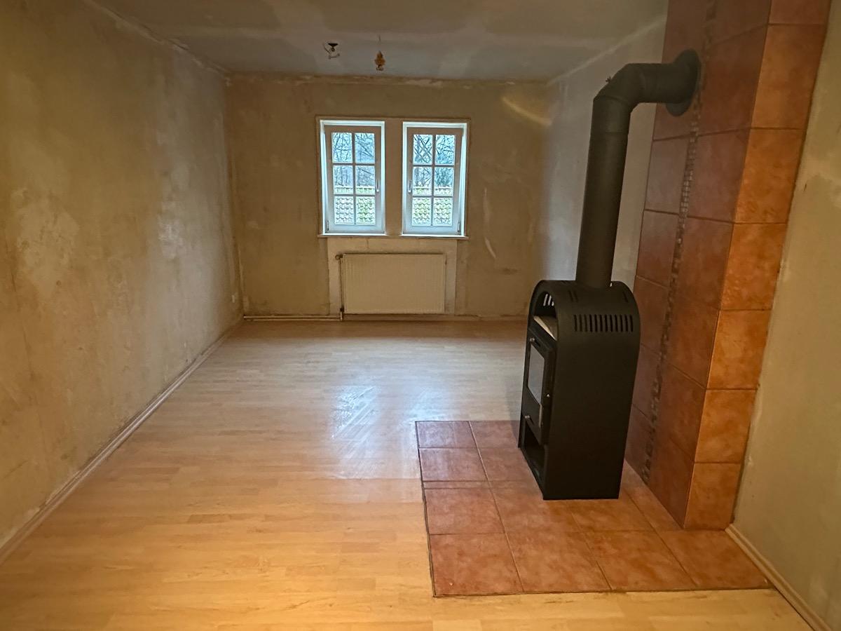 Im Inneren erwartet Sie ein gemütliches Wohnambiente mit einem Kaminofen im Wohnzimmer, der in der kalten Jahreszeit für wohlige Wärme sorgt. Ein Badezimmer sowie zwei separate Tages WCs bieten zusätzlichen Komfort.