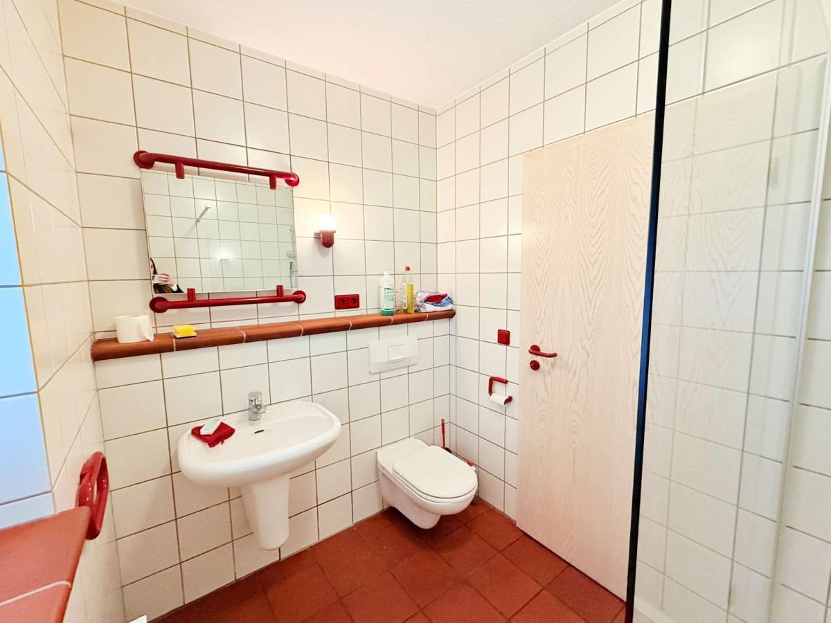 Der lichtdurchflutete Wohn- und Essbereich bildet das Herzstück der Wohnung. Von hier aus gelangt man auf die sonnige Terrasse, die einen wunderbaren Ausblick auf die umliegende Natur bietet und zum Entspannen oder geselligen Beisammensein einlädt. Die Wohnung verfügt über ein Badezimmer mit Dusche sowie ein separates Gäste-WC. Ein Waschmaschinenanschluss befindet sich direkt in der Wohnung und sorgt für zusätzlichen Komfort.