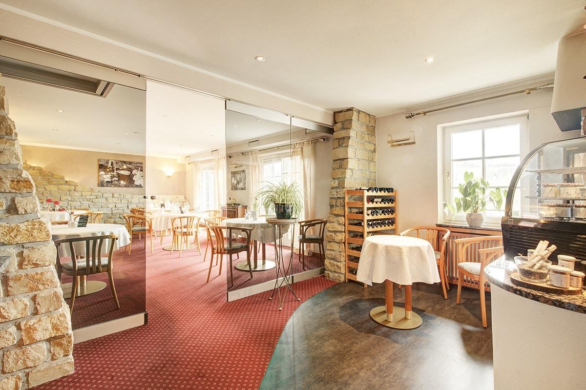 Das Gebäude selbst verfügt über eine 2 ½ geschossige Bauweise. Im Erdgeschoss befinden sich die, für das hier bislang beheimatete Restaurant, genutzten Räumlichkeiten, im Untergeschoss eine großzügige Einliegerwohnung und weitere Funktionsflächen. Im Dachgeschoß sind Fremdenzimmer mit jeweils eigenen, kleinen Bädern eingerichtet.