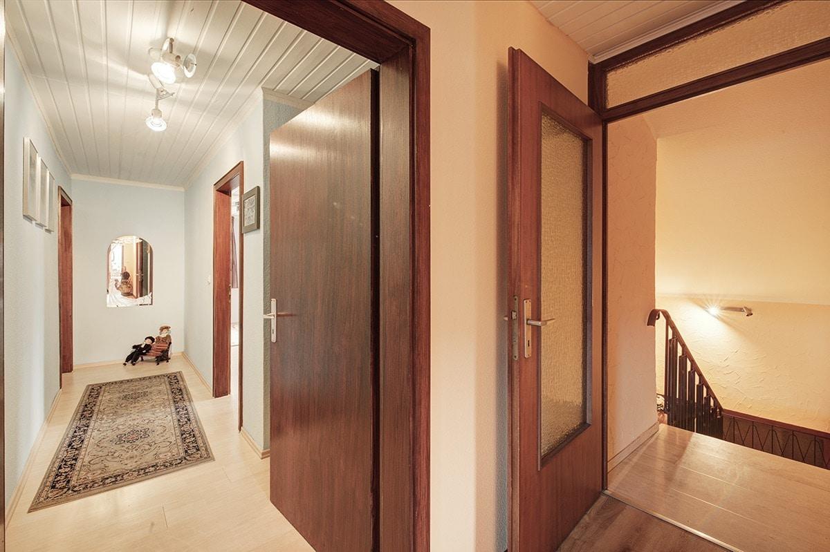 Massivbauweise mit Putz und Anstrich, Baujahr 1972 mit Erweiterung durch Anbau in 1982, Geschossdecken in Beton, Betontreppen mit Natursteinbelag, Innenwände tlw. mit Struktur-Dekorputzen, Decken im Erdgeschoss tlw. mit Holzkassettendecken, Satteldach mit Eindeckung in Berliner Welle, Anbau mit Flachdach und Bitumenbahnen, Ölzentralheizung (Baujahr 2014) mit zentraler Warmwasseraufbereitung, Öllager in Form eines Stahltanks mit 10 000 Ltr. Fassungsvermögen, Holzfenster, überw. Isolierverglasung, Kunststoffrollläden, Bodenbeläge mit Fliesen, Vinyl bzw. Teppichböden, Sanitärbereiche gefliest