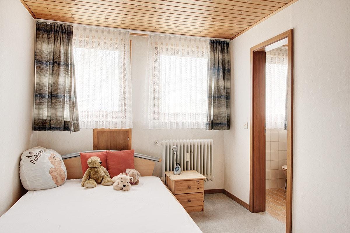 Das Dachgeschoß ist ausgebaut, 6 Doppel- und Einzelzimmer, jeweils mit eigener Dusche und WC, ein Aufenthaltsraum und eine Küche stehen bereit. Die Räumlichkeiten in diesem Geschoss haben eine Ausstattung und Gestaltung, die dem einfachen Anspruch genügen. Die Wohnfläche im Dachgeschoß beträgt rd. 134 m².