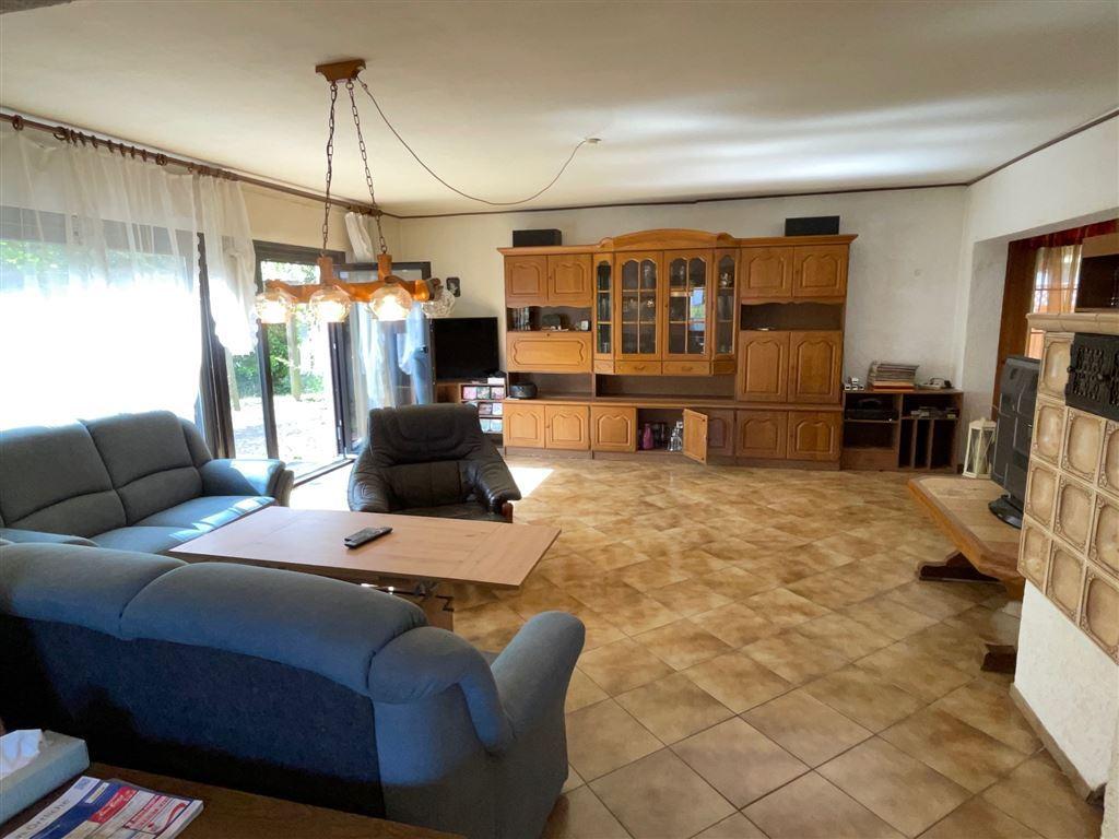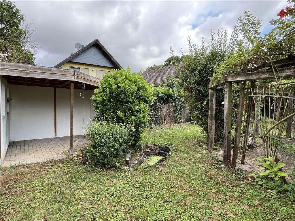 Zum Haus gehört ein Gartengrundstück mit Terrasse, überdachter Freisitz, ein Swimmingpool eine große Doppelgarage, Carport, Fertiggarage sowie Stellplätze.