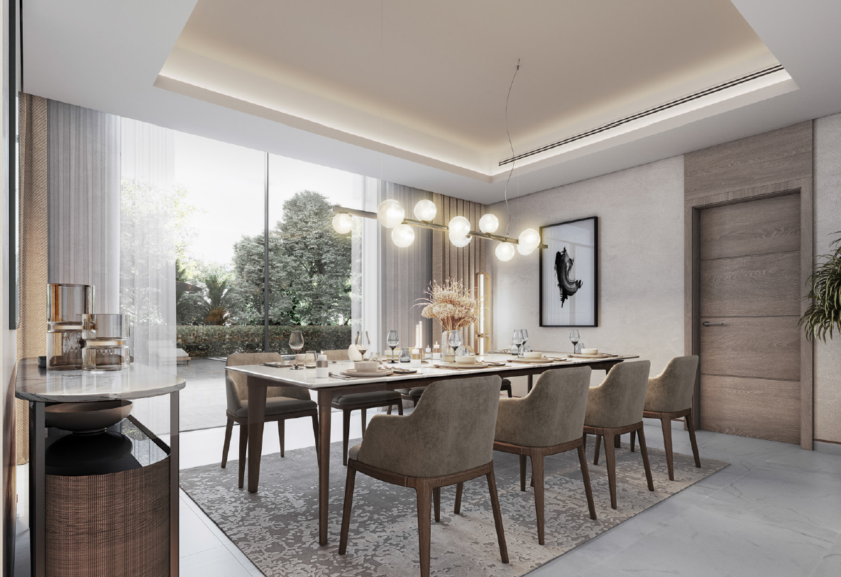 Wenn Sie diese atemberaubende Villa mit 4 Schlafzimmern betreten, werden Sie von einem Gefühl der Ruhe und des Luxus begrüßt. Umgeben von über 10.000 Bäumen in den sieben einzigartigen Parks der Gemeinde, von denen jeder von einem anderen globalen Wald inspiriert ist, finden Sie eine Oase des Wohlbefindens und der Fitness direkt vor Ihrer Haustür.\n\nDie Villa verfügt über private Außenbereiche, darunter ein glitzernder Swimmingpool und ein üppiger Garten mit großen Außenterrassen. Stellen Sie sich vor, Sie genießen ein erfrischendes Bad oder entspannen sich in Ihrer eigenen grünen Oase und haben gleichzeitig direkten Zugang zu den Grünflächen, die Ihr Haus umgeben.\n\n Im Inneren ist die Villa mit voll ausgestatteten Küchen mit Spitzengeräten, Schlafzimmern mit eigenem Bad und begehbaren Kleiderschränken sowie separaten Zimmern für das Hausmädchen, Abstell- und Waschräumen ausgestattet. Die großzügigen Wohn- und Essbereiche eignen sich perfekt, um Gäste zu bewirten oder einfach nur die Zeit mit Ihren Lieben zu genießen. Für zusätzlichen Komfort und Nachhaltigkeit verfügt die Villa über EV-Ladestationen, überdachte Parkplätze und Hausautomatisierungsfunktionen. Und dank des 24/7-Sicherheitsdienstes und des bewachten Zugangs zur Gemeinde können Sie sicher sein, dass Ihr Seelenfrieden stets oberste Priorität hat.\n\nGönnen Sie sich die wesentlichen Einrichtungen und Dienstleistungen der Gemeinde, darunter ein Clubhaus, eine Schule, eine Klinik, Einzelhandelsgeschäfte, Cafés und Restaurants vor Ort. Begeben Sie sich auf eine Wellness-Reise entlang des 7,5 km langen Wellness-Parcours oder spielen Sie eine Partie Basketball oder Fußball auf den Sportplätzen. Und mit einer Moschee vor Ort können Sie Ihren Glauben bequem in Ihrer eigenen Nachbarschaft praktizieren.\n\nVerpassen Sie nicht die Gelegenheit, in dieser exquisiten 4-Schlafzimmer-Villa Luxus vom Feinsten zu erleben. Machen Sie diese Villa zu Ihrem Traumhaus und schaffen Sie sich unvergessliche Erinnerungen an einem Ort, an dem sich jeder Tag wie ein Urlaub anfühlt.