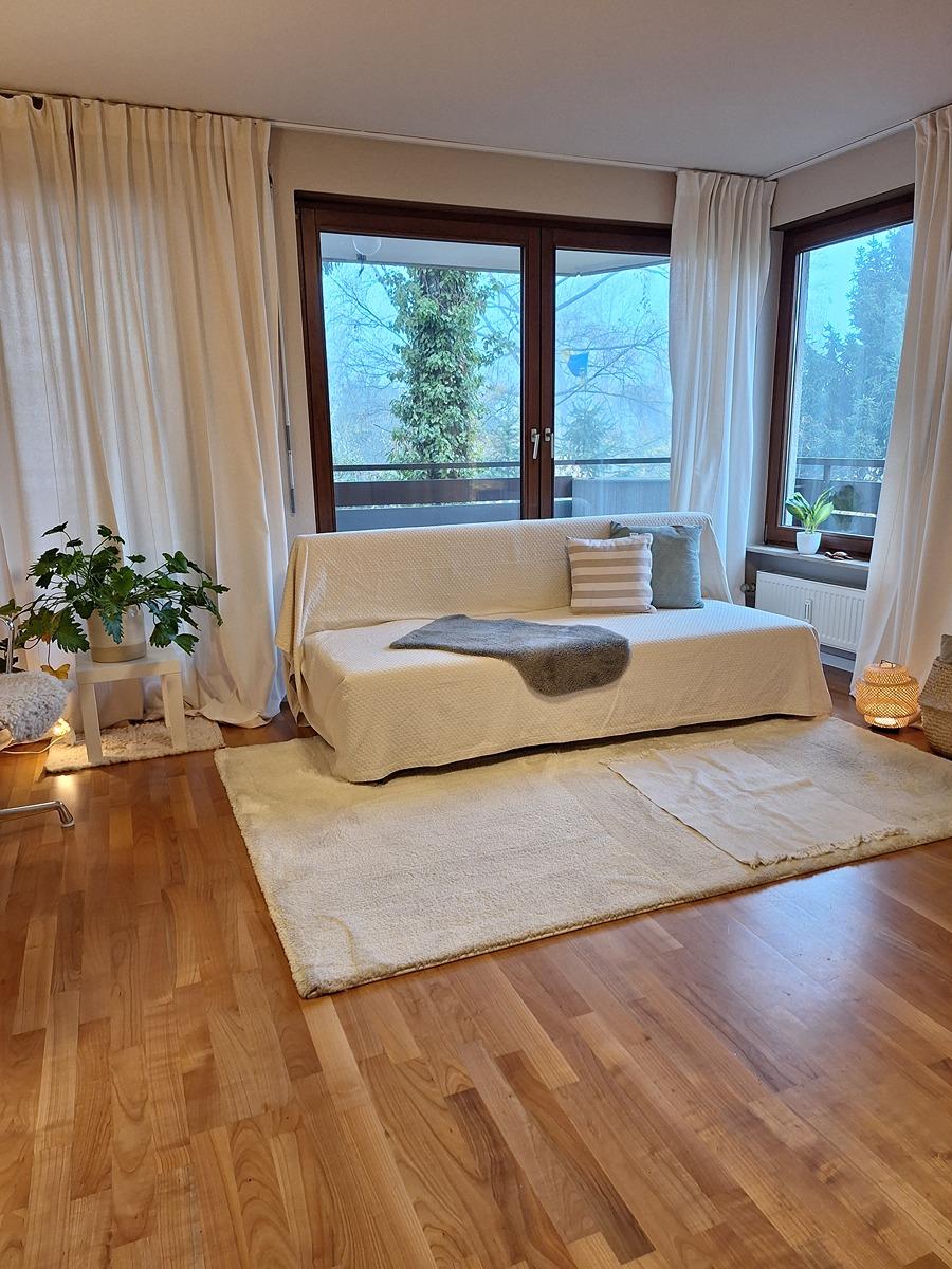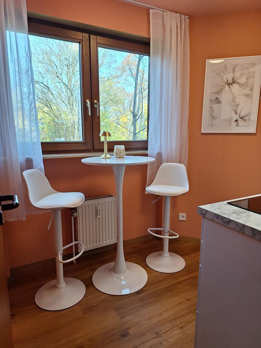 Der Küchenraum ist komplett renoviert mit neuer Tapete und hochwertigem, robusten Vinylboden. Die Wohnung ist frisch gestrichen in modernem Stil. Das Beleuchtungskonzept ist ebenfalls neu installiert. Die Wohnung wird möbliert, wie auf den Fotos zu sehen, veräußert. Die Einbauküche, komplette Küchenausstattung und Bett sind neu und unbenutzt.