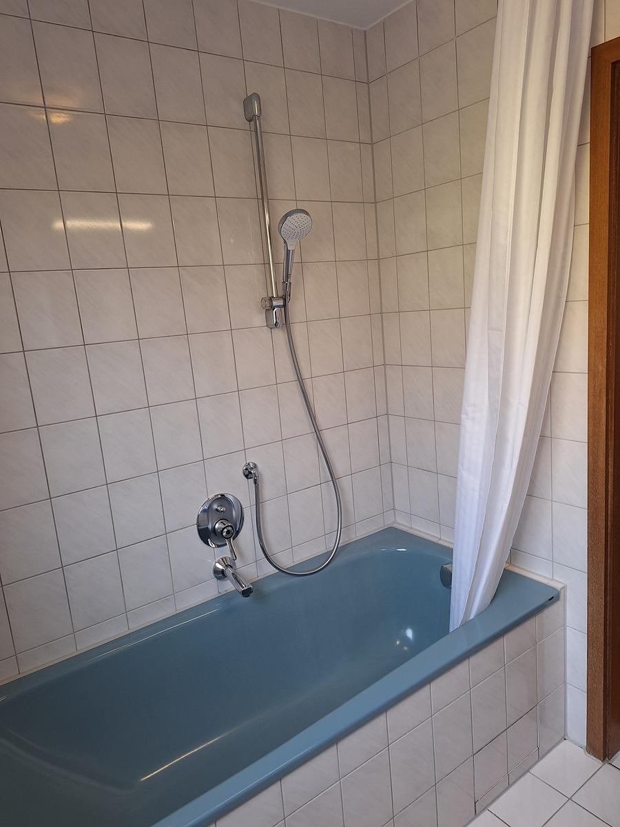 Im Bad wurde das Innenleben des Sanitärs erneuert (WC, Duscharmatur, Haupthähne des Warm- und Kaltwassers). Die Armatur des Waschbeckens wurde komplett erneuert.