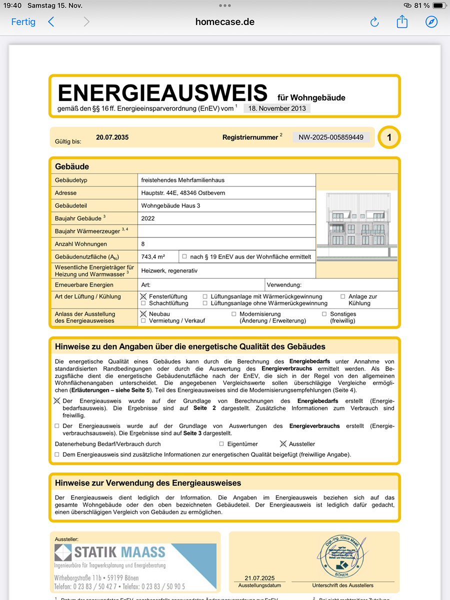 Die Eigentumswohnung befindet sich im Erdgeschoss, hat einen kleinen Garten der auch von außen zugänglich ist. Dadurch das die Wohnung in der Mitte liegt sind die Heizkosten sehr gering. Auch der Echtholz Parkettboden macht die Wohnung sehr wohnlich. Bodentiefe Fenster, mit elektrischem Rollläden, bringen viel Licht in die Wohnung. Des Weiteren befindet sich eine Klimaanlage im Wohnzimmer.