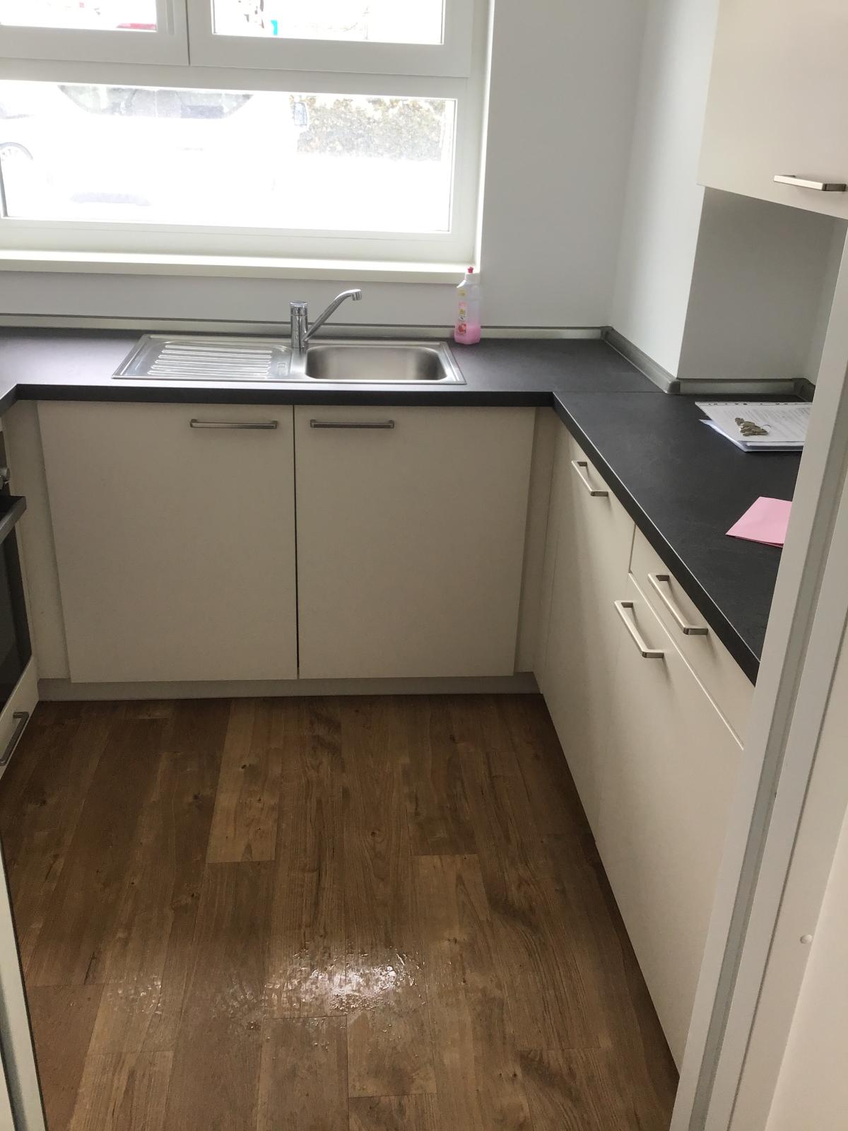 Zur Wohnung gehört eine Einbauküche mit Herd, Kühlschrank und Spülmaschine.