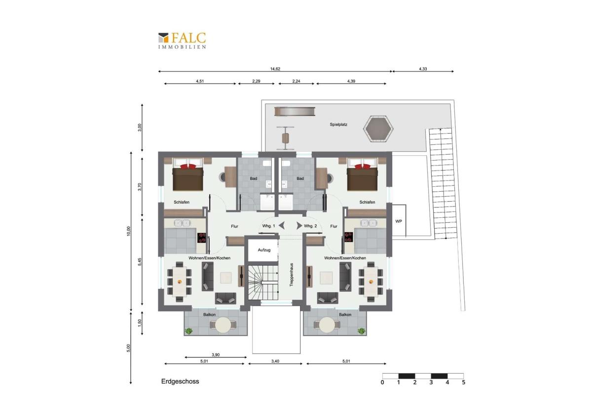 - Freizeit-Baumöglichkeit (z. B. Spielplatz oder Spielwiese) im hinteren Außenbereich.