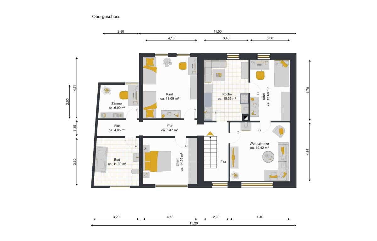 Obergeschoss mit ca. 110 m² Wohnfläche: