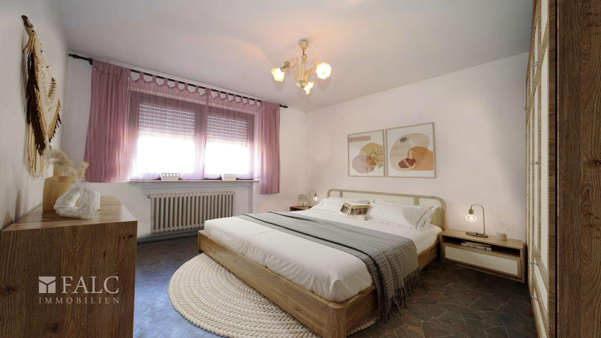 Das große, helle Schlafzimmer wartet auf Ihren individuellen Einrichtungsstil, verbringen Sie erholsame Stunden in Ihrer behaglichen Traumoase und starten Sie ausgeruht in den Tag.