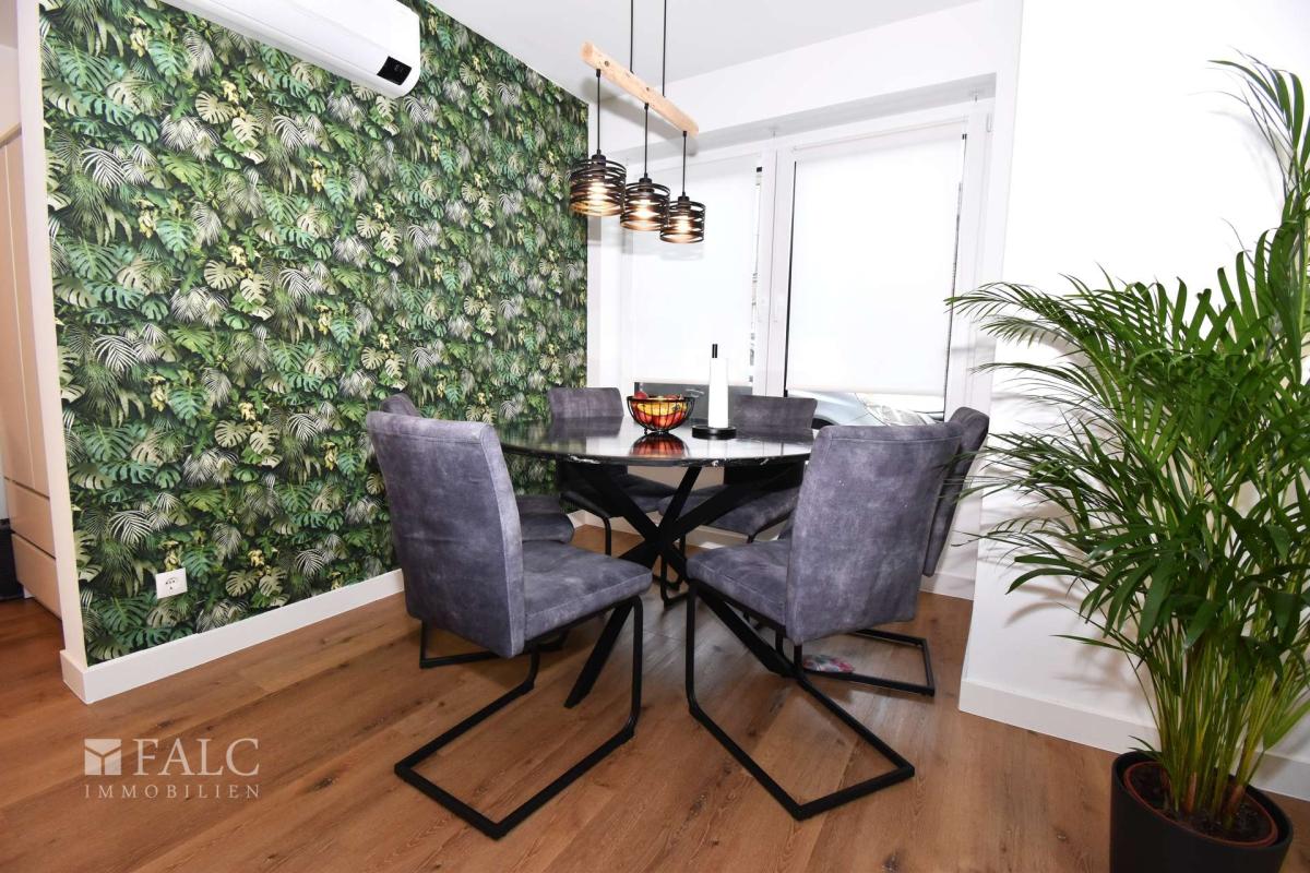 Für ein angenehmes Wohnklima sorgen eine effiziente Luft-Wärmepumpe in Kombination mit Fußbodenheizung sowie Klimaanlagen in beiden Wohneinheiten. Eine Photovoltaikanlage auf dem Dach ergänzt das Energiekonzept und trägt zu langfristiger Kostenersparnis bei.