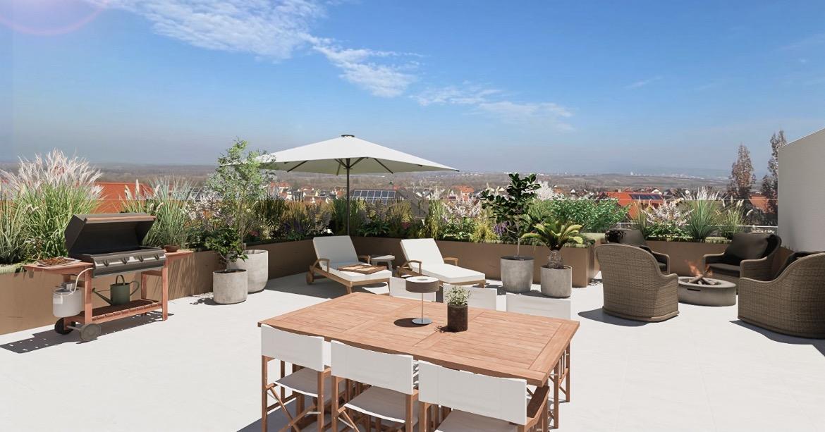 Hier werden rund 134qm Wohnfläche, auf einer Ebene und in eine Dachterrasse mündend, mit hochwertigen Ausstattungsmerkmalen und klarem Design vereint.