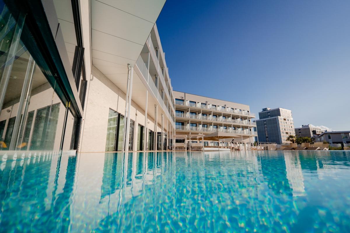 Ein Alleinstellungsmerkmal ist die nachhaltige Bauweise. Das Gebäude wurde in modularer Holzbauweise aus FSC-zertifiziertem Holz errichtet, gefertigt im eigenen Werk in Dänemark, und ist als bislang einziges Ferienhotel an der Ostseeküste mit dem DGNB-Gold-Vorzertifikat ausgezeichnet. Moderne Energie- und Mobilitätskonzepte unterstreichen die Zukunftssicherheit des Projekts.