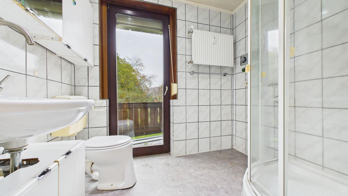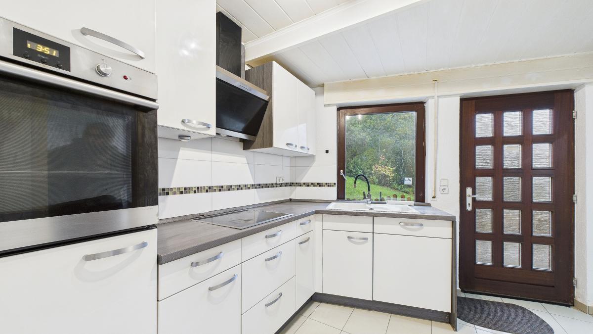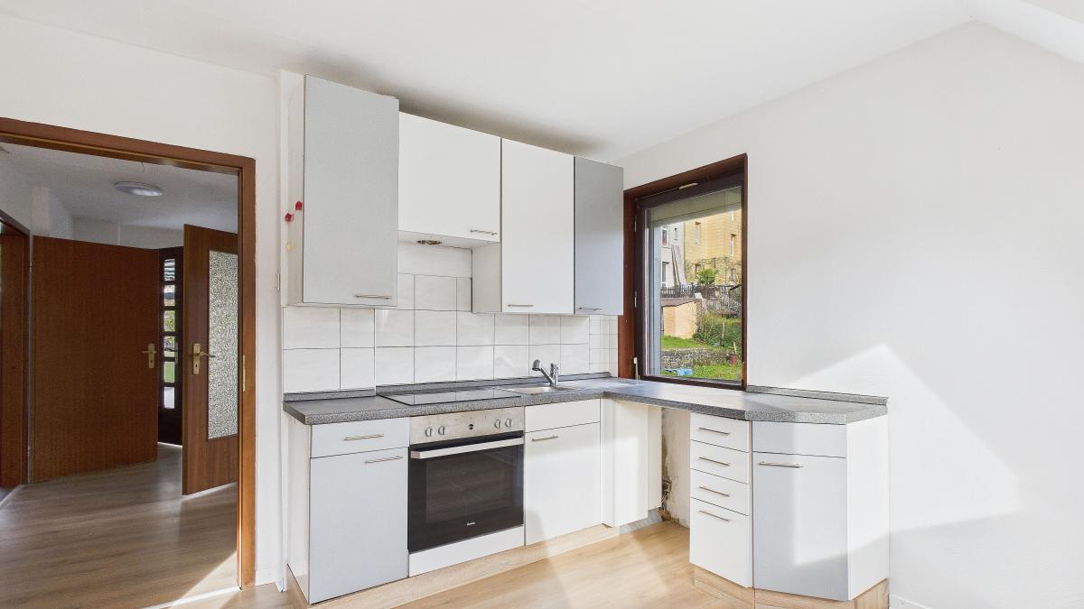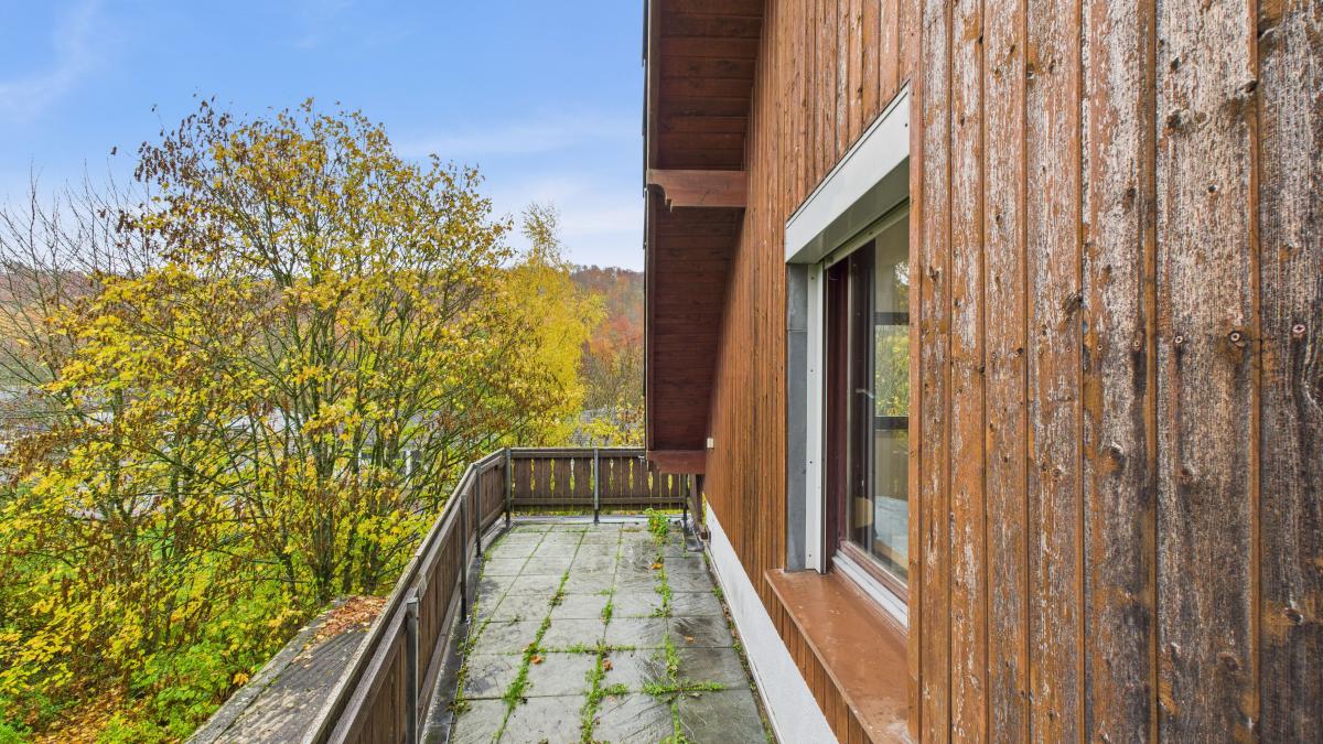 Die offene Küche ist mit Geräten ausgestattet und lädt zum gemeinsamen Kochen ein. Von hier aus gelangt man auf die Terrasse, auf der man gemütliche Sommerabende verbringen kann. Der Balkon bietet einen herrlichen Ausblick auf die umliegende Landschaft. Dank des Kellers besteht ausreichend Stauraum für alle benötigten Utensilien. Insgesamt präsentiert sich das Einfamilienhaus in einem guten Zustand und bietet eine ideale Wohnmöglichkeit für Familien oder Paare.