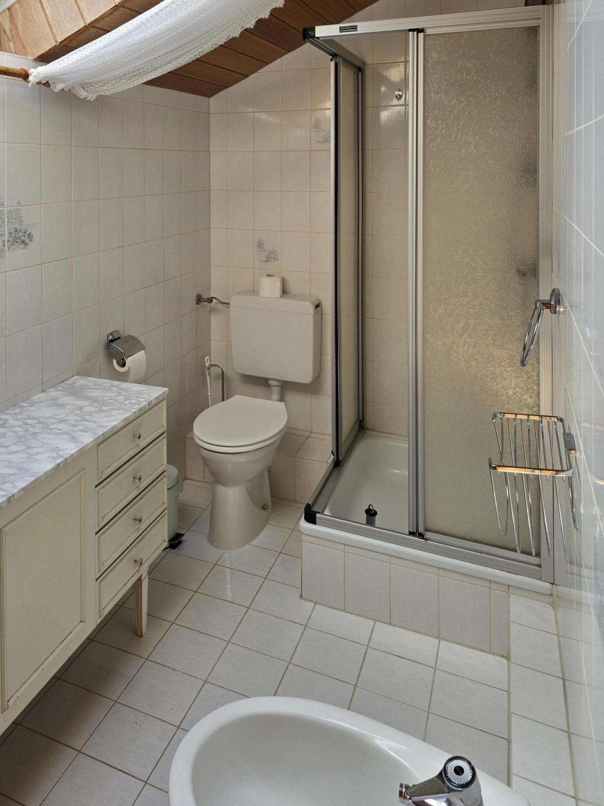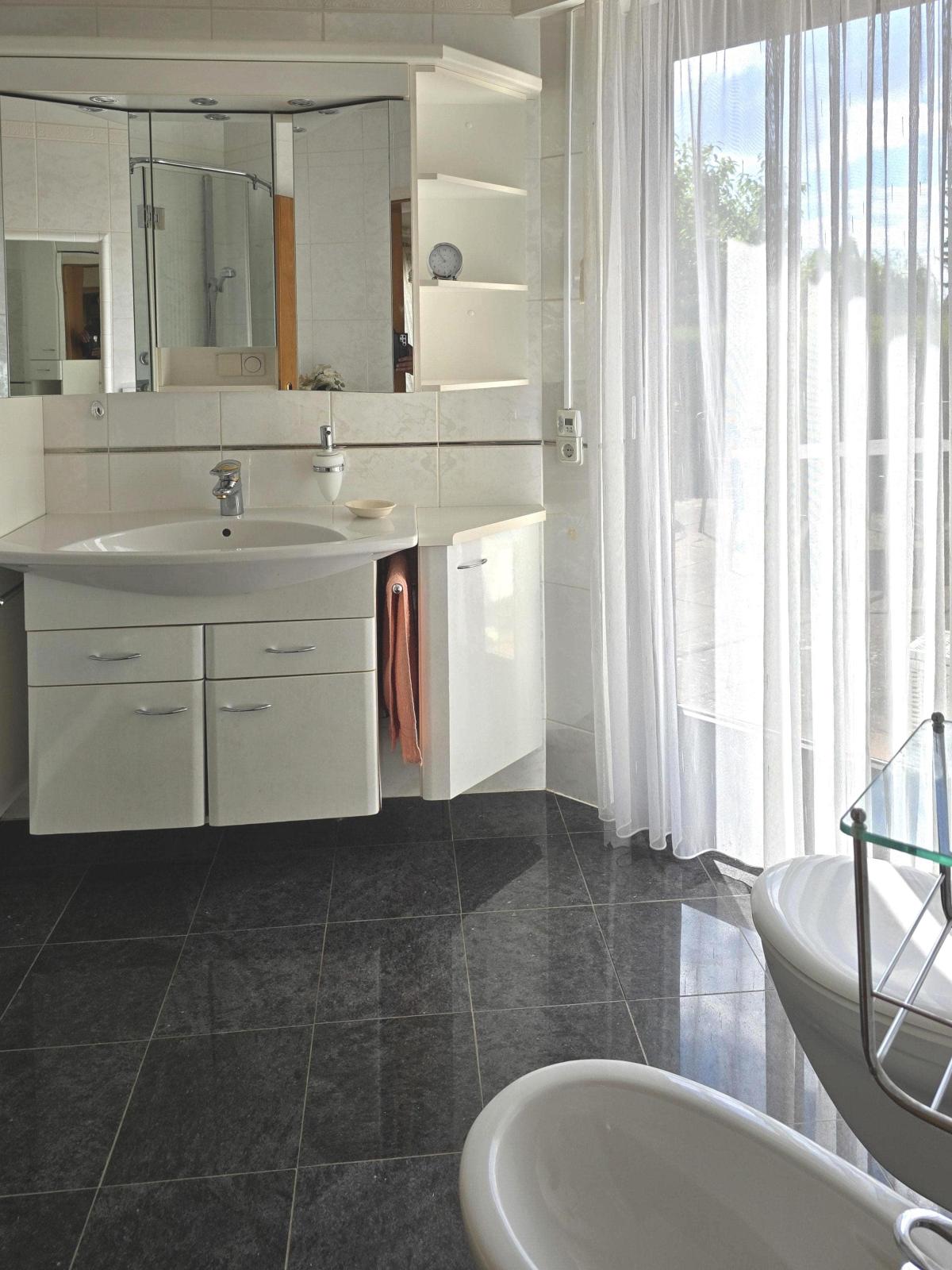 Modernisiertes Bad (2022) mit Wanne, Dusche, Waschbecken und WC