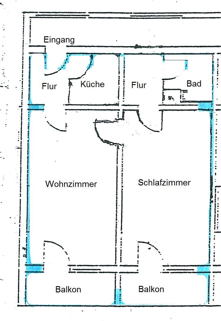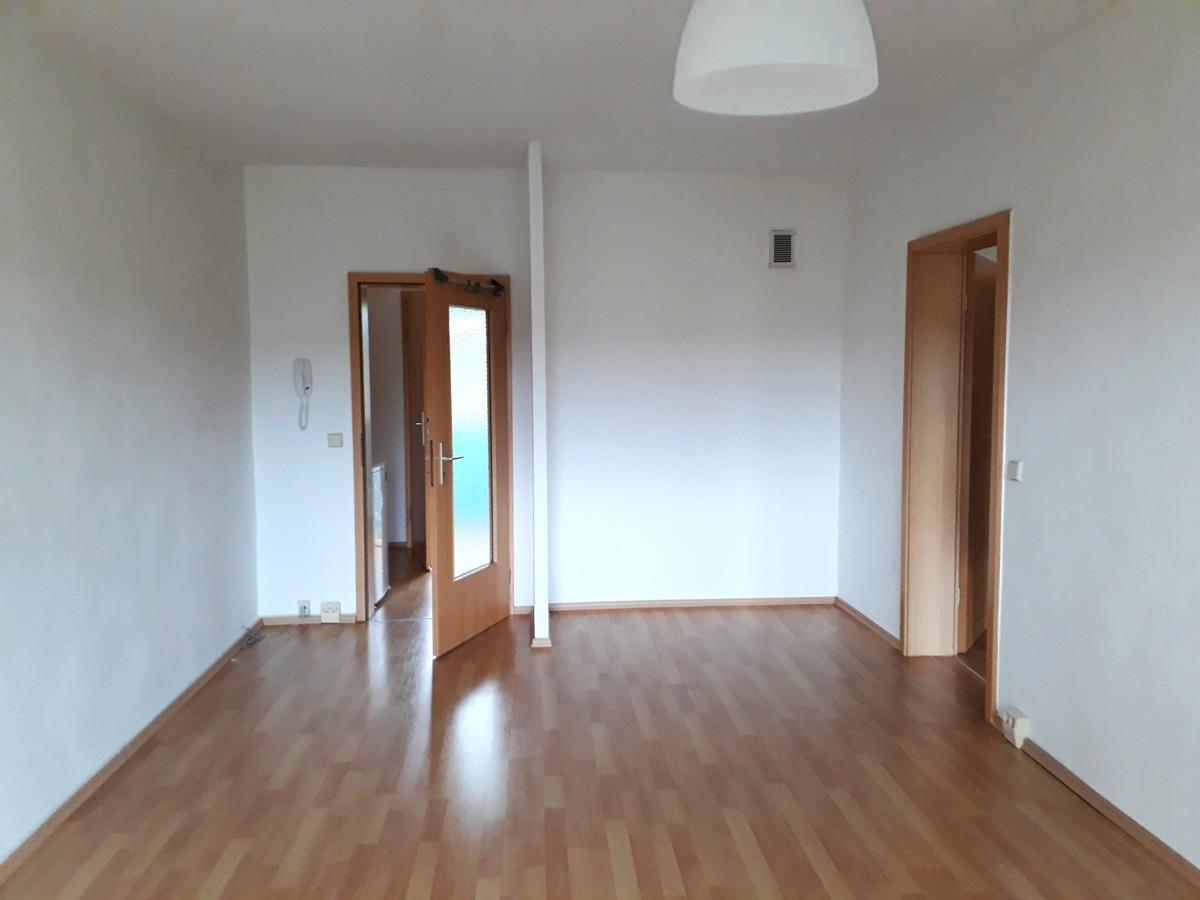Die Wohnung befindet sich im 4. Obergeschoss eines im Jahr 2000 modernisierten Wohnblocks mit insgesamt 51 Wohneinheiten. Sie verfügt über Wohn- und Schlafzimmer mit Balkon, Flur, eine kleine Küche und Bad, jeweils ohne Fenster. Vom Balkon aus hat man einen herrlichen Blick ins Grüne.