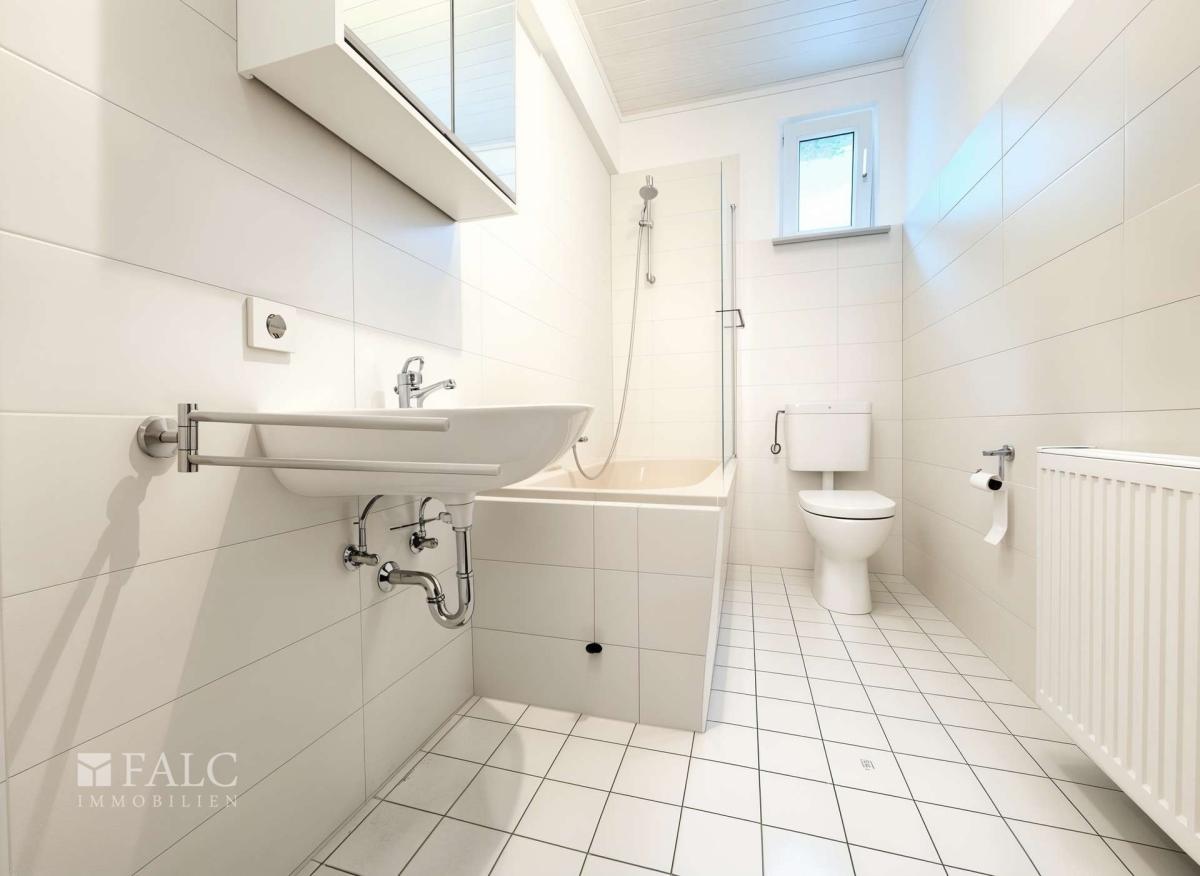 Die Bäder sind entsprechend ihrer Lage funktional aufgeteilt: Im Erdgeschoss befindet sich ein Badezimmer mit Badewanne, das sich ideal für entspannte Wellnessmomente eignet, während im Obergeschoss ein weiteres Badezimmer mit Dusche zur Verfügung steht – perfekt für eine schnelle und komfortable tägliche Nutzung.