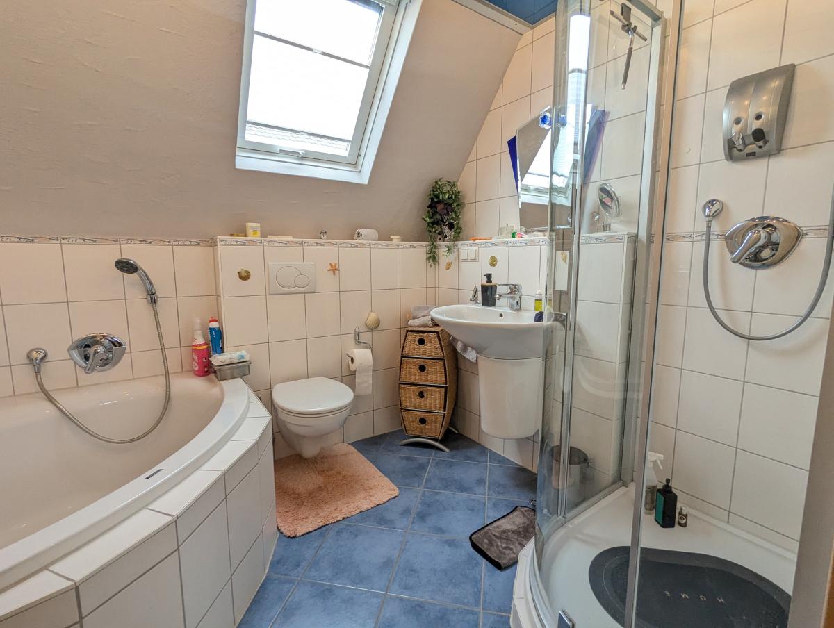 Das Obergeschoss verfügt über drei bis vier individuell nutzbare Zimmer (ein Durchgangszimmer) ideal als Schlafzimmer, Kinderzimmer oder Büro. Hinzu kommt ein Gäste-WC sowie ein weiteres Badezimmer mit Wanne und Dusche.