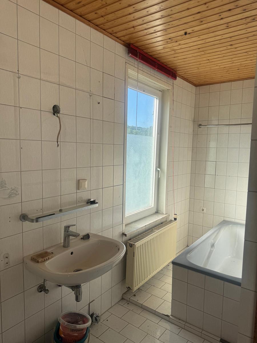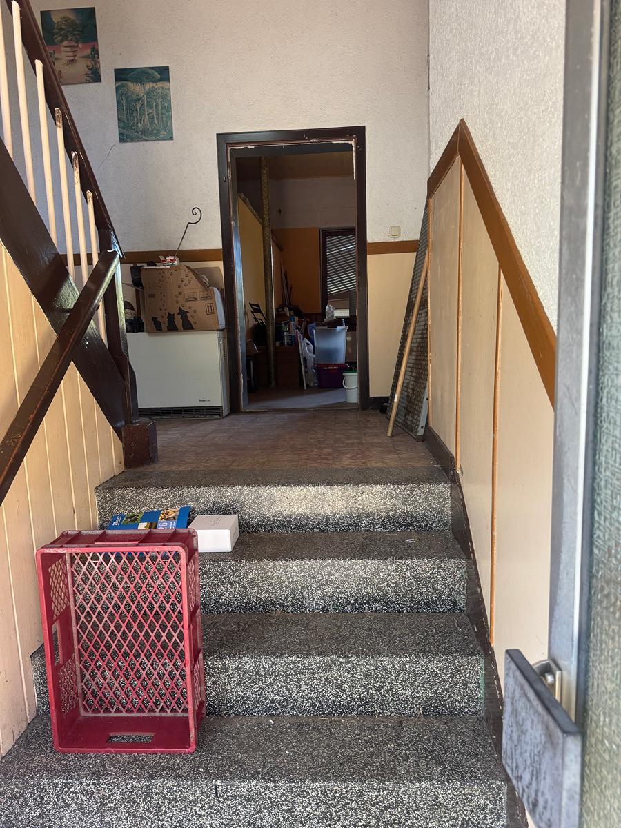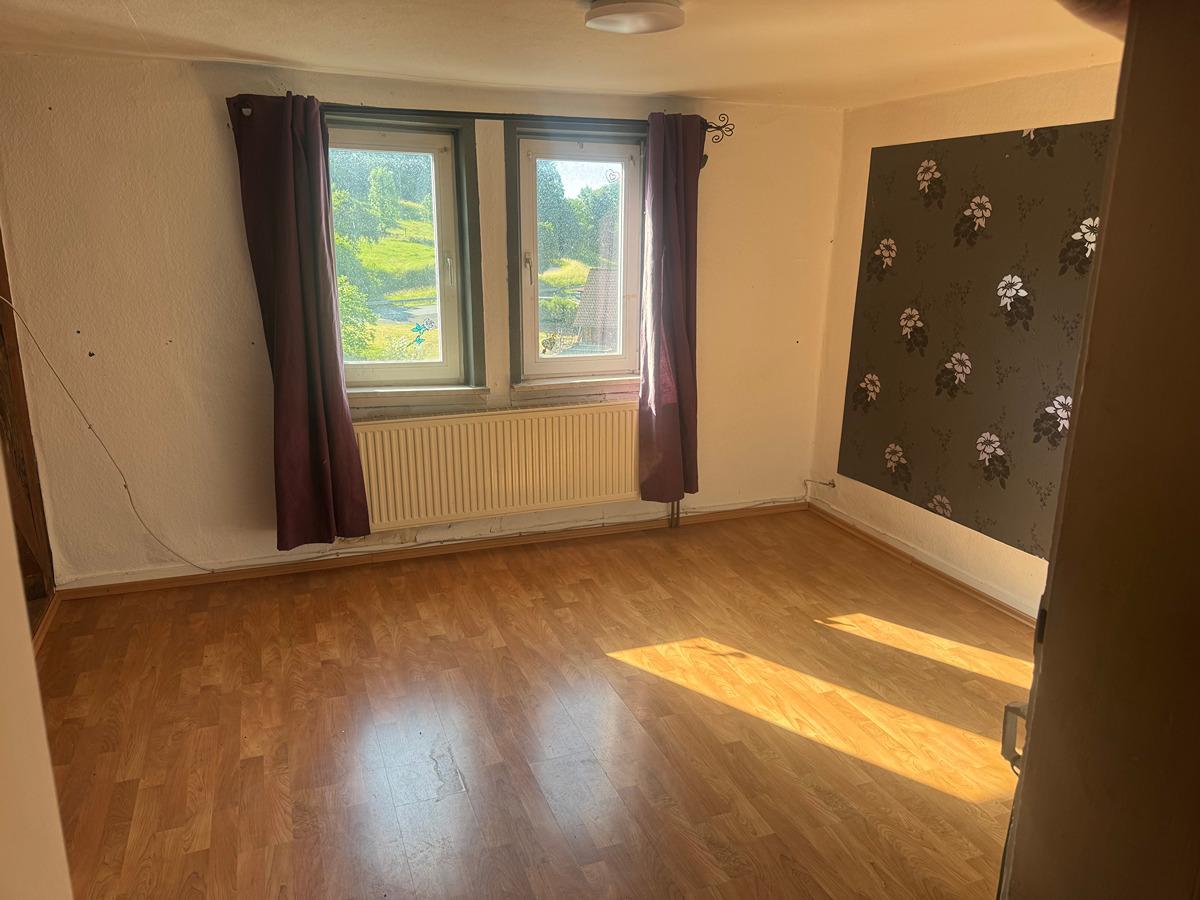 Im 1. und 2. OG ist eine 4 Zimmer, Küche, Bad Wohnung, ausgestattet mit einer Gaszentralheizung. (Mietgastank hinter dem Haus im Garten). Zentraler Holzofen im unteren Flur.