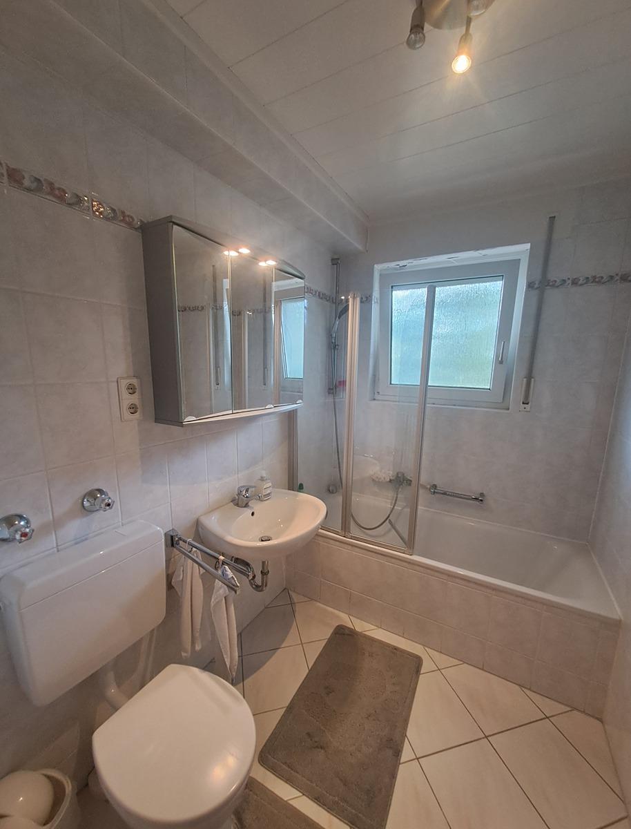Bad: mit Badewanne und Fenster