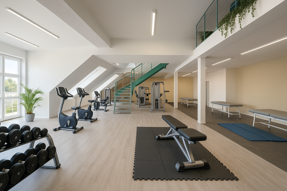 Die Immobilie bietet eine äußerst vielseitige Raumstruktur, die sich flexibel an unterschiedliche Nutzungskonzepte anpassen lässt. Vom zentralen Flurbereich aus erschließen sich fünf abgetrennte Einheiten, die jeweils über mehrere Räume verfügen. Drei dieser Bereiche sind wohnungsähnlich aufgebaut und eignen sich ideal für betreute Nutzungseinheiten, Bürokombinationen oder therapeutische Einrichtungen. Ergänzt wird das Raumangebot durch großzügige Galeriebereiche sowie zwei besonders große, offen gestaltete Flächen, die ehemals als Tanzstudios genutzt wurden. Diese Flächen zeichnen sich durch ihre hohe Decke, die offene Raumwirkung und die Möglichkeit zur weiteren Unterteilung aus – beispielsweise für Schulungsräume, Praxisgemeinschaften oder Studioeinheiten.