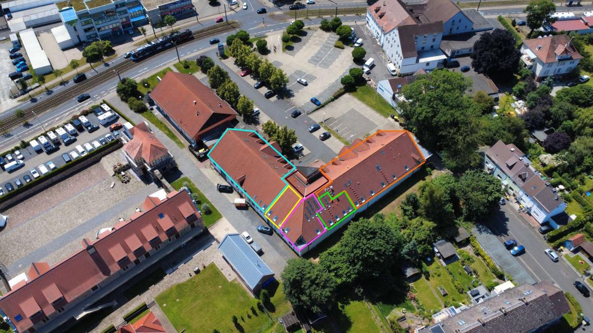 Zur besseren Übersicht sind die verschiedenen Gewerbeeinheiten im Exposé farblich gekennzeichnet und auf den beigefügten Grundriss- und Innenaufnahmen entsprechend benannt.