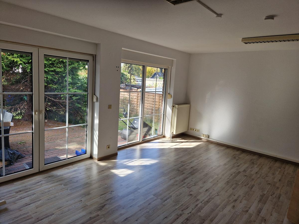 Erdgeschoss mit Flur, WC, Arbeitsraum bzw. Schlafzimmer, Küche und sehr großes Wohnzimmer mit Terrasse.