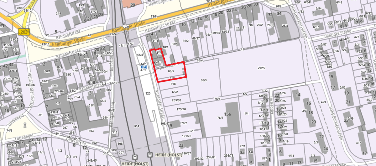 Inmitten der aufstrebenden Kreisstadt Heide bietet sich eine außergewöhnliche Gelegenheit für visionäre Investoren: ein rund 2.000 m² großes Baugrundstück in absolut zentraler Lage. Nur wenige Schritte vom Bahnhof entfernt und etwa 500 Meter vom lebendigen Marktplatz liegt dieses Grundstück in einem städtischen Umfeld, das Urbanität, Infrastruktur und Zukunftspotenzial ideal miteinander verbindet. Bestehende Bebauung ist nicht mehr vorhanden; veräußert wird das projektierte, zügig bebaubare Grundstück.
