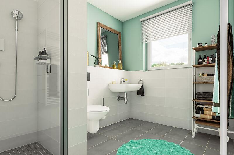 • Sanitärausstattung: Ihre Badezimmer sind voll ausgestattet. Dazu gehört auch eine bodengleiche Dusche.