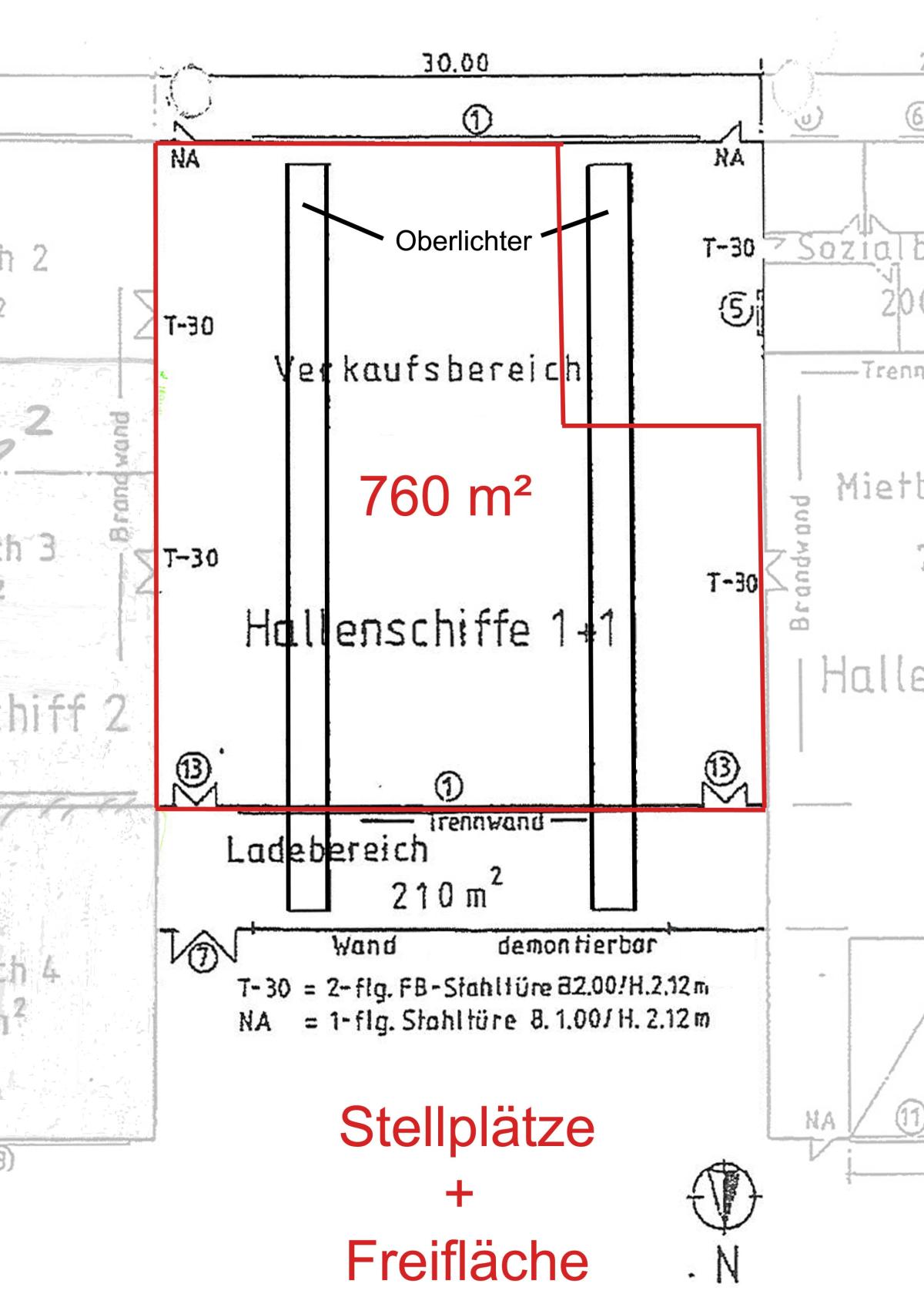 - Höhe bis Deckenstahlträger von ca. 4,72 - 4,97 m