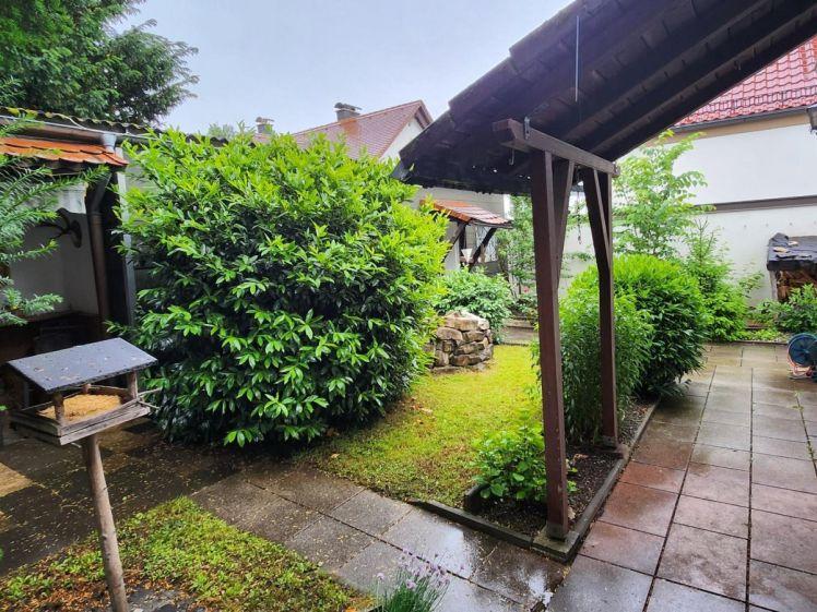 Besonders hervorzuheben ist der schöne kleine uneinsehbarer eingewachsener Garten im Innenhof mit einer überdachten Terrasse, die zum Verweilen im Freien einlädt - ideal für Grillabende oder entspannte Stunden im Grünen.