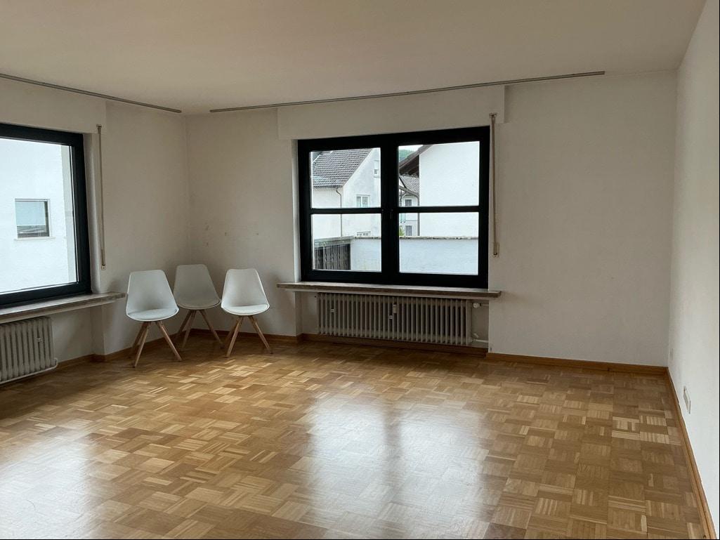Wohnzimmer, Esszimmer mit Zugang zur nach Südwesten ausgerichteten Terrasse, Küche mit Vorrat, zwei Schlafzimmer mit Zugängen zum Balkon, Büro, Bad mit Dusche und Wanne, Gäste-WC, Diele, nach Osten ausgerichteter Balkon