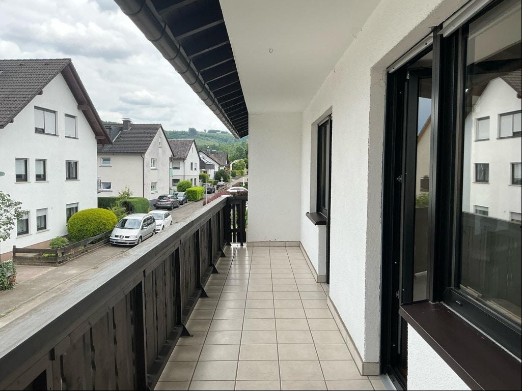 Wohn-/Essbereich mit Zugang zum Balkon, Küche, zwei Schlafräume, Bad mit Wanne, Diele, Abstellraum, nach Südwesten ausgerichteter Balkon