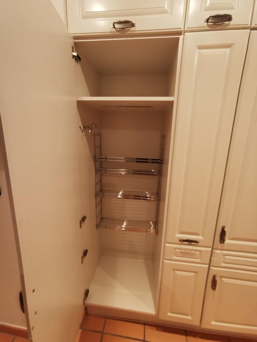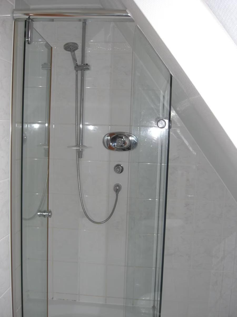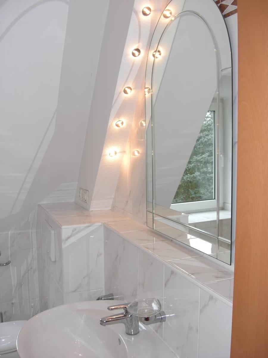 Buchenparkett in der gesamten Wohnung, Wohn- Esszimmer Kaminofen mit Fenstertüre mit Wärmespeicher und Terrakottafliesen, offene Küche mit Edelstahl Dunstabzug über Kochtresen mit hochwertigen Granitarbeitsplatten und Granitspiegel, Cerankochfeld (4 Platten), Edelstahlbackherd, Kühlschrank mit Gefrierfach. Küche mit vielen Apothekerschränken auch im Flur. Wannenbad/WC mit Marmorfliesen im 2 OG und Badregal, 2 Balkone (u.a. Granitplatten) im 2 OG, 1 Spitzbalkon im 3 OG, Duschbad/WC im 3 OG. Schlafzimmer mit vielen Einbauschränken, Panoramadachfenster und Ankleide im 3 OG. Weiße KunststoffDoppelisolierglasfenster, Rolladen, Flur mit vielen Apothekerschränken und Abstellraum. In der ganzen Wohnung Halogenseilsysteme, Halogeneinbaustahler, Sternenhimmel, Einbau Deckenlautsprecher. Vorhangseilsysteme. Keller ohne Einrichtung.