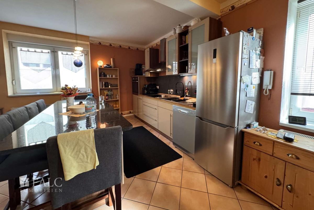 Früheres Ladenlokal, heute moderner Wohnraum mit offener Küche inkl. Essplatz, Gäste-WC, Schlafzimmer, Kinderzimmer, Bad mit Dusche und Badewanne.
