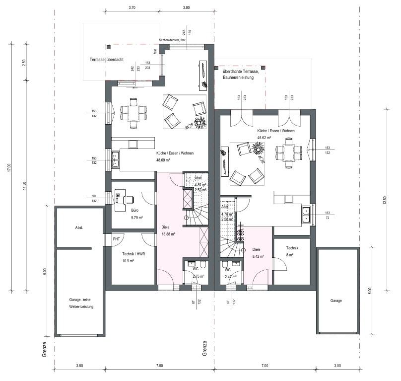Variante 1 Haus links: ca. 194 m² Wfl., ca. EUR 630.000.– schlüsselfertig, ohne Garage, zzgl. Grundstück (diese Seite & Variante hat sich bereits unser Kunde ausgesucht)