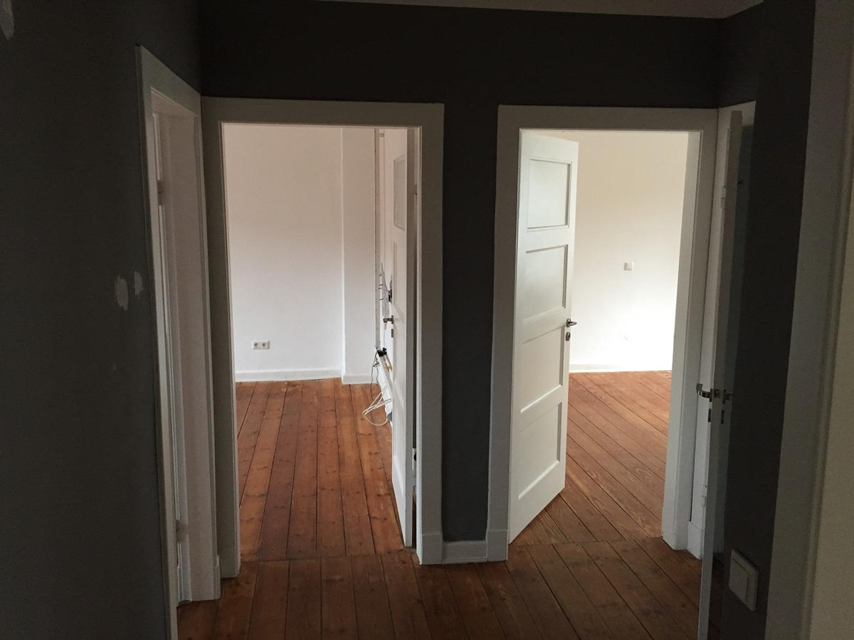Alle Wohnräume sind mit typischem Hamburger Dielenboden ausgestattet (Bad gefliest). Die Doppelschiebetür erlaubt sowohl eine offene als auch eine getrennte Nutzung und unterstreicht den klassischen Altbau-Charakter bei gleichzeitig hoher Vermietbarkeit.