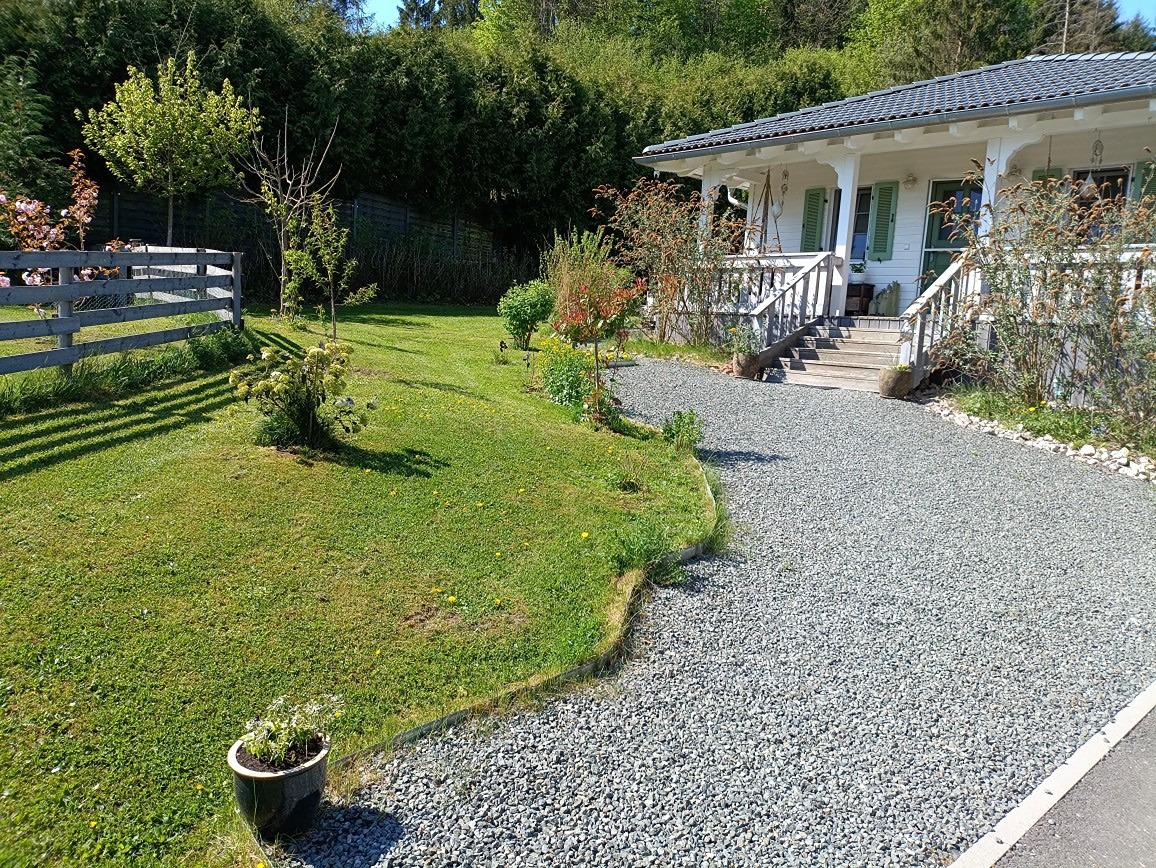 Das Grundstück ist ein wahres Naturparadies: komplett eingezäunt, mit elektrischem Einfahrtstor und Videoüberwachung.