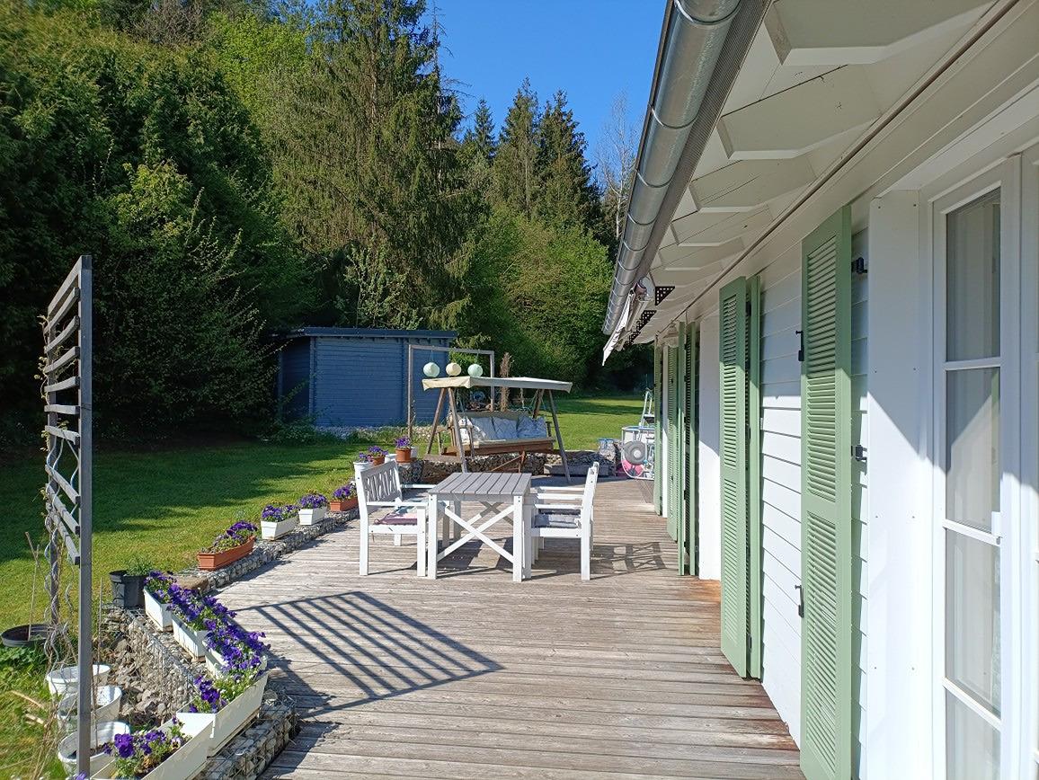 Mit einer Wohnfläche von knapp 100 m², einer umlaufenden Holzterrasse (ca. 85 m²) und einem 2.746 m² großen, liebevoll angelegten Garten bietet dieses Zuhause Geborgenheit, Privatsphäre und ein unvergleichliches Lebensgefühl.