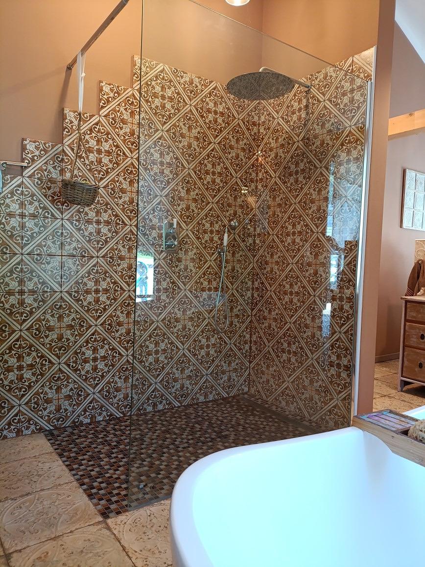 überdachter Jacuzzi-Bereich mit Warmwasser-Außendusche,