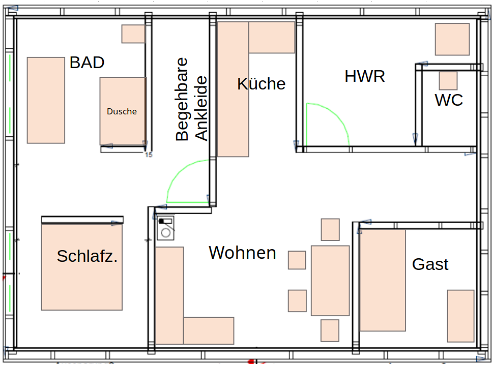 Ein weiteres Gästezimmer mit eigenem WC sowie ein Hauswirtschaftsraum runden das Raumangebot ab.