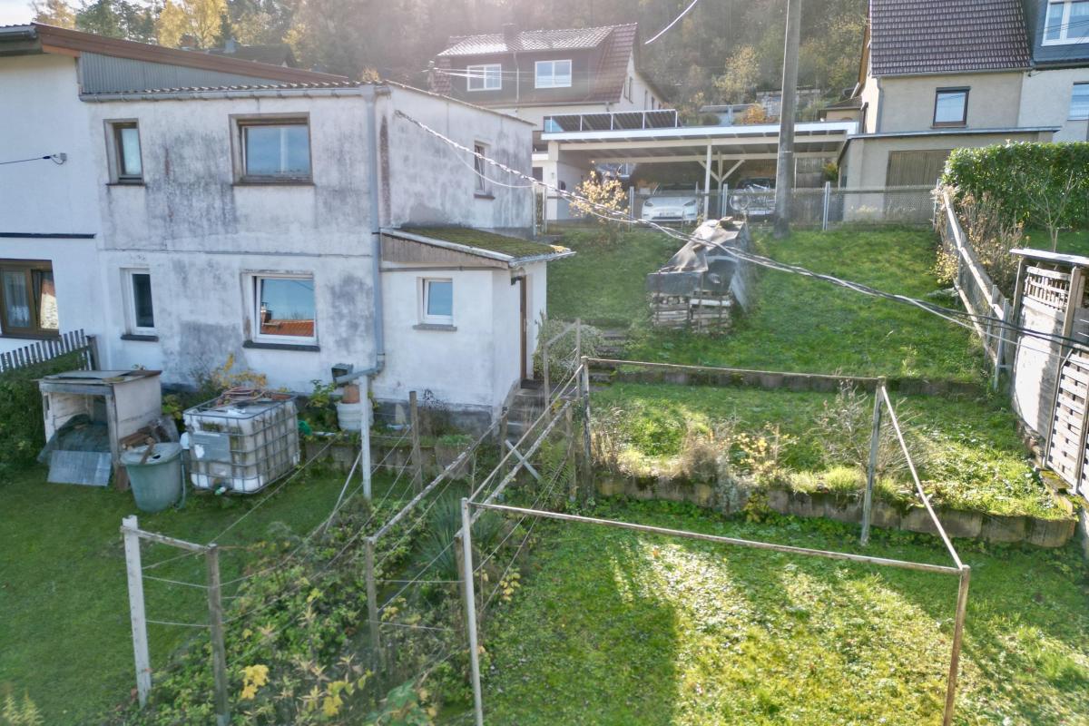 Die für die Hofferbertaue typische Doppelhaushälfte wurde ca. 1938 massiv errichtet und das Haus wurde ca. 1983 durch einen Anbau deutlich erweitert. Einige Modernisierungen wie bei der Elektrik, den Fenstern, der Heizung oder der Fassade folgten in den 1990er Jahren. Zuletzt kam ein wasserführender Kaminofen in das Wohnzimmer. Er sorgt nicht nur dort für wohlige Wärme, sondern unterstützt dank Pufferspeicher im Keller auch die übrige Heizung.