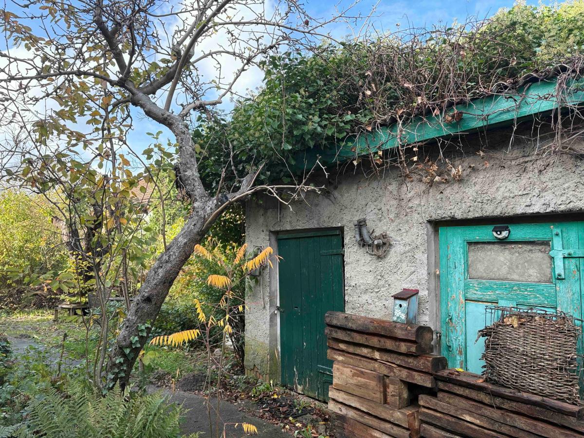 Es verfügt über zwei Eingänge und ein überschaubares - sehr hübsch und verwunschen angelegtes - Grundstück mit kleinerem Nebengebäude sowie kuscheligen Sitzplätzen vor und hinter dem Haus.
