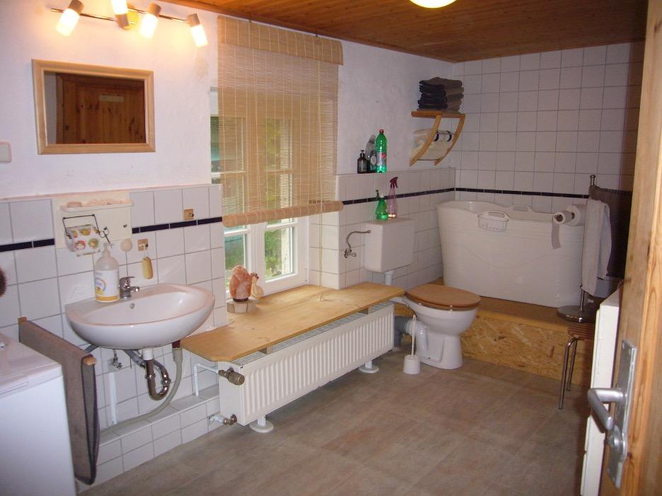 - Badausstattung Einbau-Dusche und mobil aufstellbare Wanne