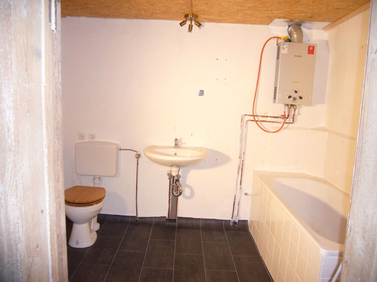 Die rechte Haushälfte wurde begonnen zu Wohnzwecken auszubauen. Hier sind ein Bad und eine Küche vorbereitet.