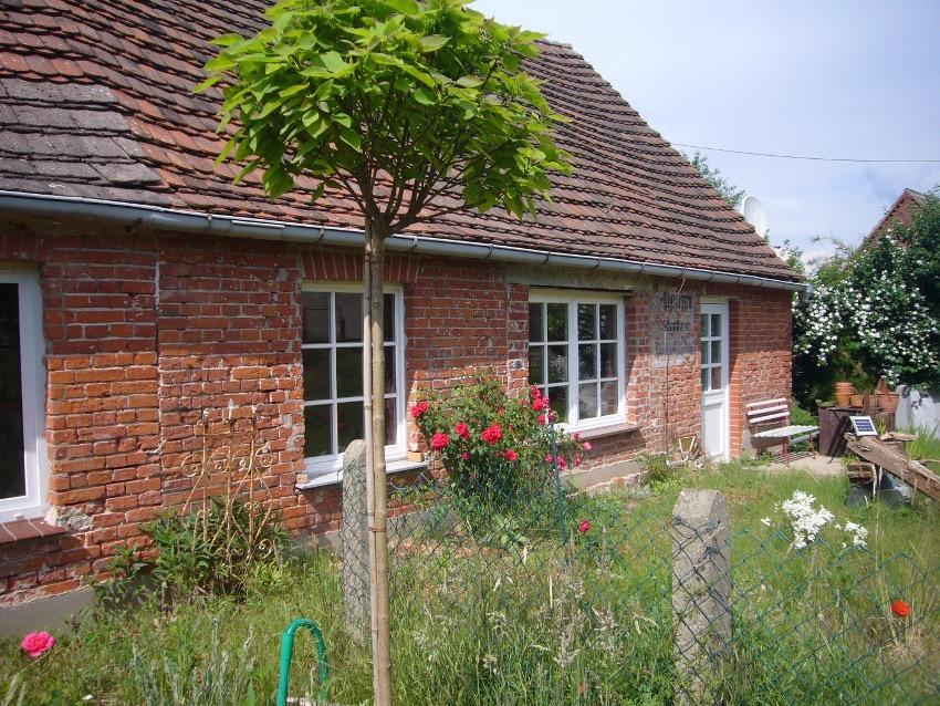 Das Gebäude versprüht insgesamt einen ländlichen Charme und wurde teilsaniert. So wurde der Giebel abgedichtet, neue Kunststofffenster bzw. Holzfenster mit hübschen Sprossen eingebaut und Türen erneuert. Wasser und Abwasser-Anschlüsse sind auch bereits neu gelegt worden und ein Badezimmer wurde in der rechten Hälfte vorbereitet mit Warmwasser-Boiler und Badeofen für das Badewasser.