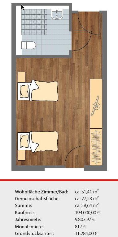 Dieses Haus ist bereits seit 2003 in Betrieb und wird jetzt in einzelnen Wohnungen verkauft. Somit erhalten Sie einen sofortigen Mietertrag und müssen nicht auf eine Fertigstellung warten.
