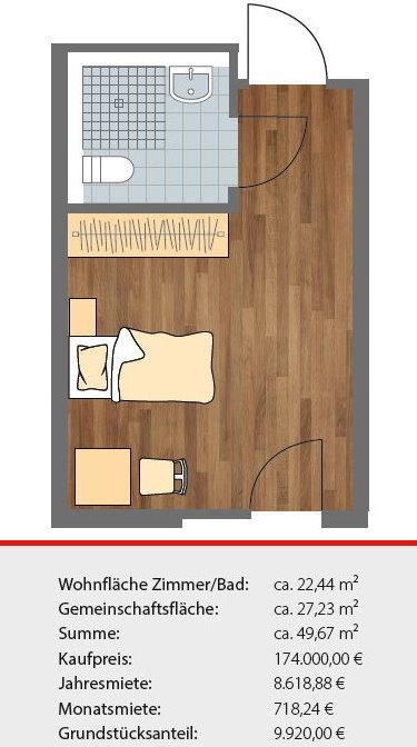 Profitieren Sie von einem festen langfristigen Mietvertrag mit integrierter Mietsteigerung, Verlängerungsoption und nur geringen Nebenkosten.