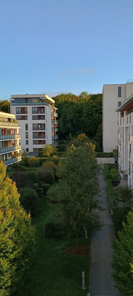 Die sehr ruhige Penthousewohnung hat Bodentiefe Fenster mit elektrischen Jalousien, diese geben eine wunderbare Aussicht, aber auch Sicherheit. Fußbodenheizung in allen Räumen, die bis auf das Schlafzimmer (Eichenparkett) mit großen Fliesen ausgestattet sind, geben angenehme Wärme im Winter. Jedes Zimmer hat Zugang zum Balkon oder der Terrasse. Auf jeder Seite gibt es einen Wasseranschluss. Die große Terrasse kann mittels 2x elektrischen Markisen beschattet werden.